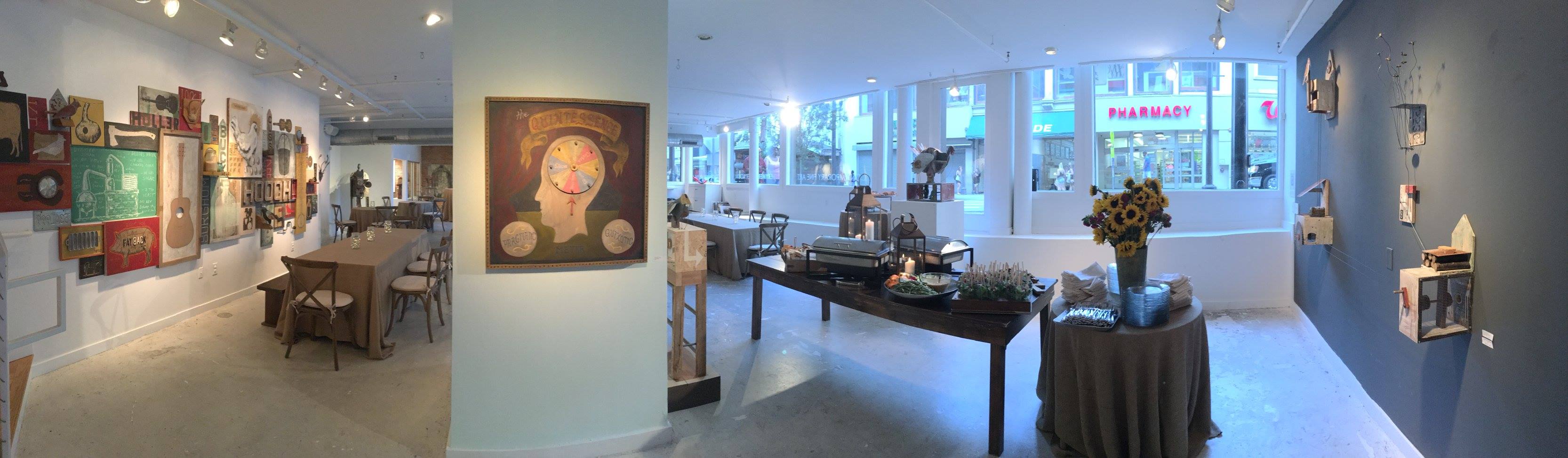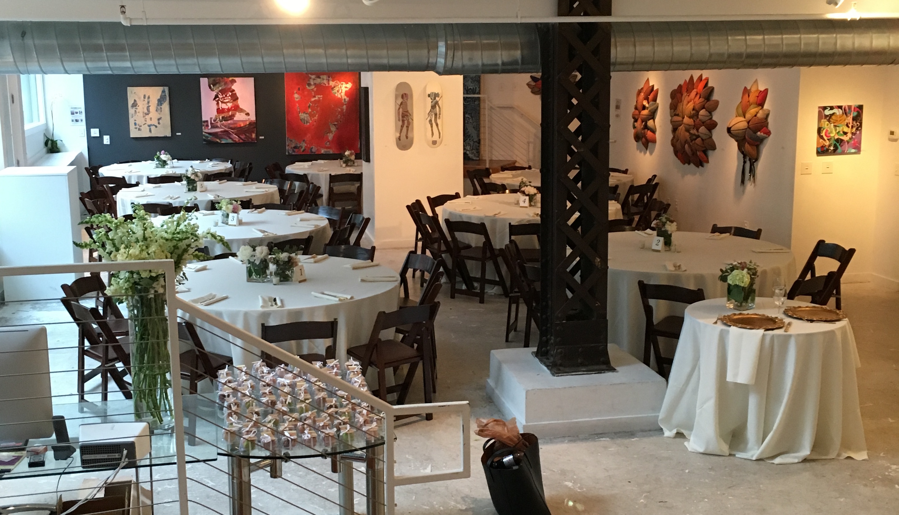 Perfect for wedding receptions, wine tastings, or private/corporate parties, The Rymer Gallery is a breathtaking venue for your next special event. Our 3,000 square foot space boasts sleek, sophisticated architecture, partially exposed brick, and industrial furnishings, as well as a full kitchen and mezzanine. Although the number of allowed attendees varies somewhat based on what type of furniture your event may require, our general capacity is about 150 guests.